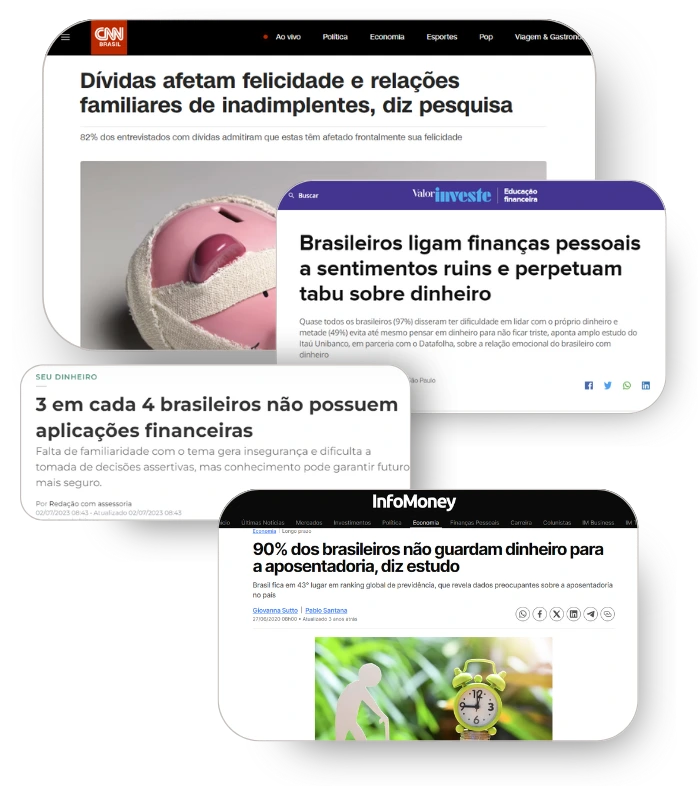 Pesquisas mostram que a maioria dos brasileiros não sabem gerir suas finanças, isso significa que estão vivendo uma vida financeira instável. Quase todos os brasileiros (97%), segundo pesquisa do Datafolha, disseram ter dificuldade em lidar com o próprio dinheiro.
